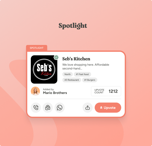 Hightlight businesses that were initially added by community members and have financially supported our project, granting them top visibility in their category and region.